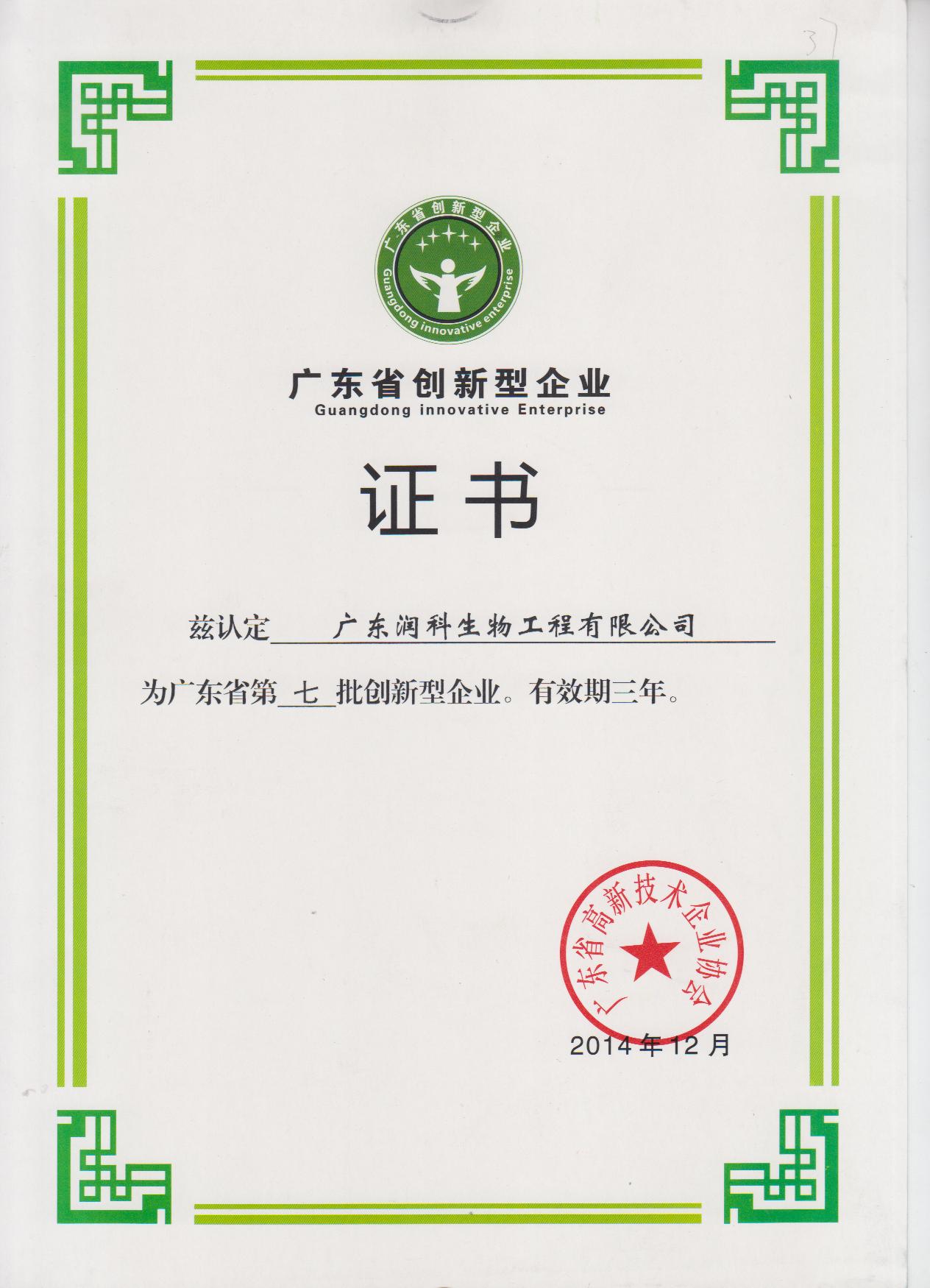 ???????潤(rùn)科生物是擁有核心自主知識(shí)產(chǎn)權(quán)、持續(xù)創(chuàng)新能力和行業(yè)帶動(dòng)性強(qiáng)的企業(yè),2014年12月,省級(jí)六部門(mén)公布第七批廣東省創(chuàng)新型企業(yè)通過(guò)名單。潤(rùn)科生物再立潮頭,繼續(xù)引領(lǐng)全省企業(yè)創(chuàng)新發(fā)展!