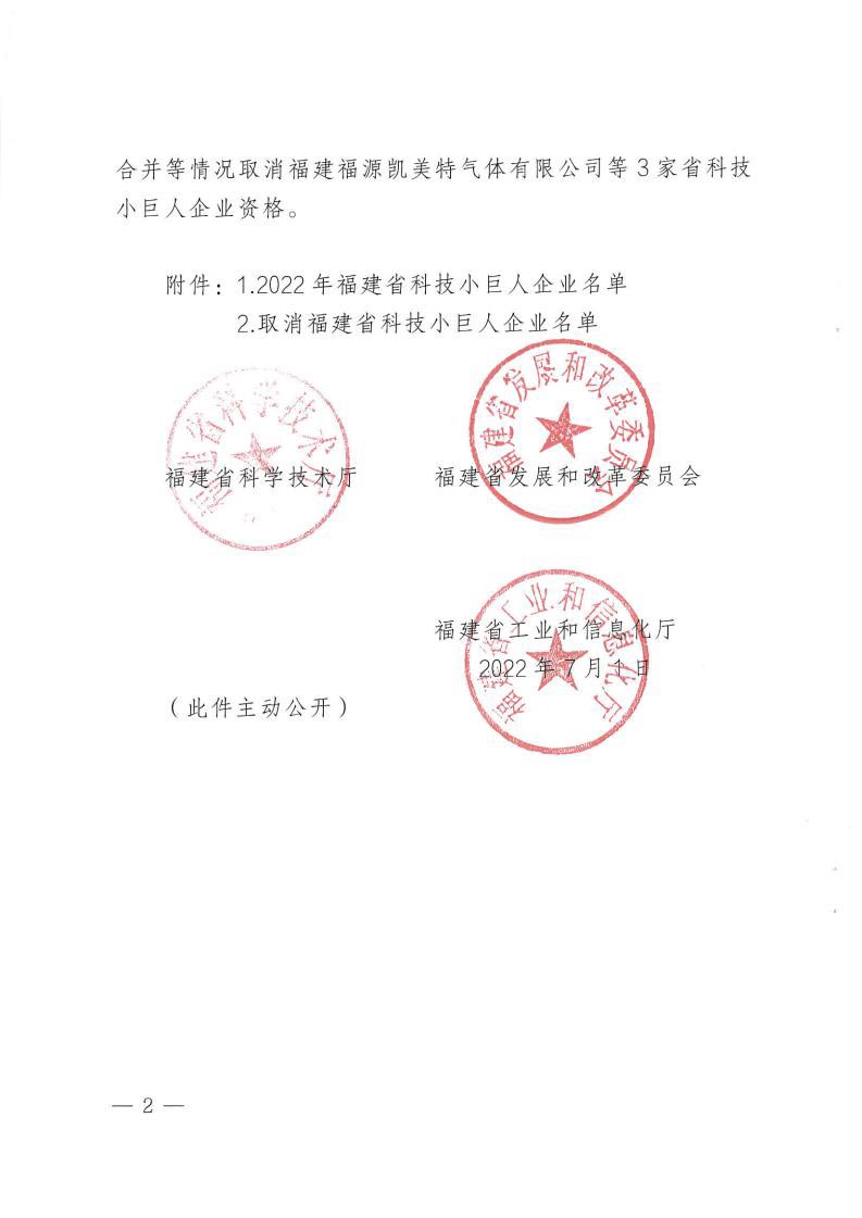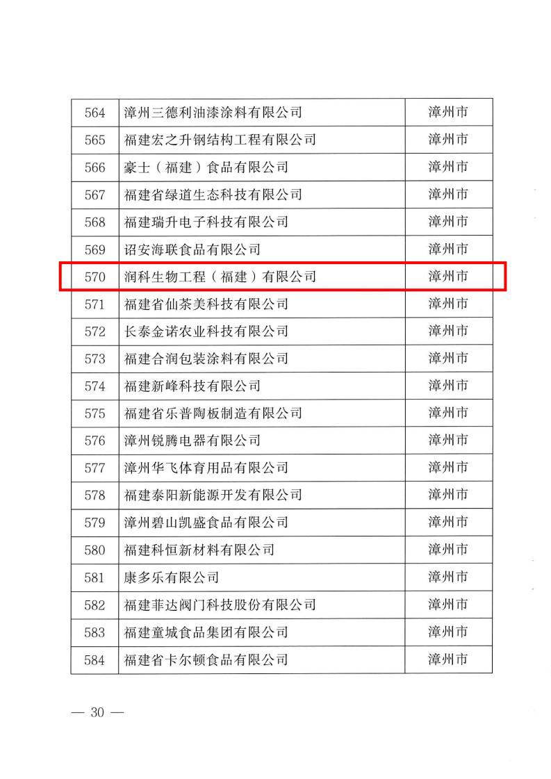 ? 2022年7月1日由福建省科學(xué)技術(shù)廳、福建省發(fā)展和改革委員會(huì)、福建省工業(yè)和信息化廳認(rèn)定潤科生物工程(福建)有限公司為福建省“科技小巨人”企業(yè)。
